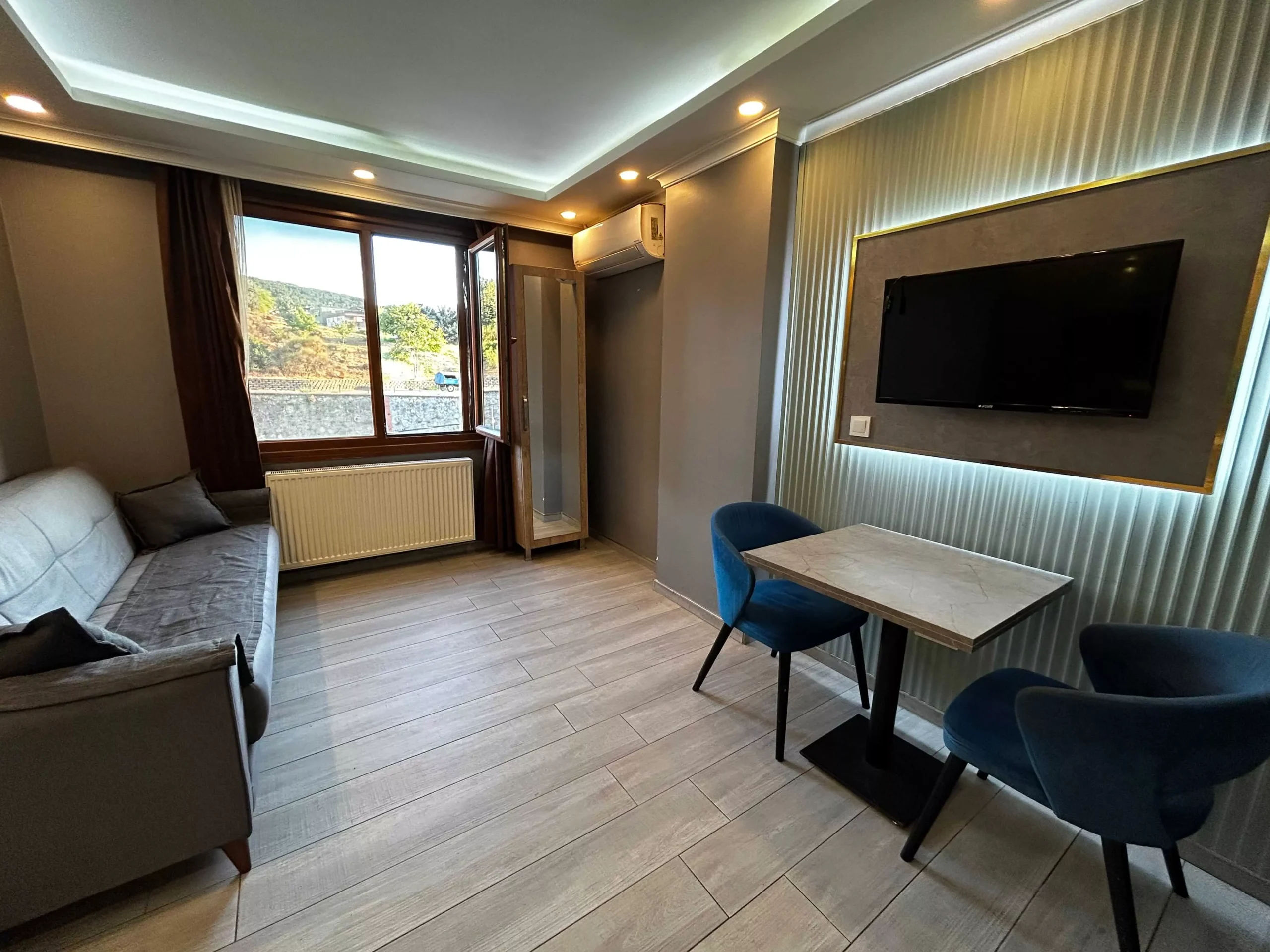 Odamızda yüksek hızlı ücretsiz Wi-Fi, klima, Smart TV, 7/24 sıcak su ve tam donanımlı yaşam alanı bulunmaktadır. Günlük temizlenen odamız hijyen ve konfor açısından üst düzey bir deneyim sunar. Ücretsiz otopark imkanı sayesinde araçlı misafirlerimiz için ekstra avantaj sağlar.
